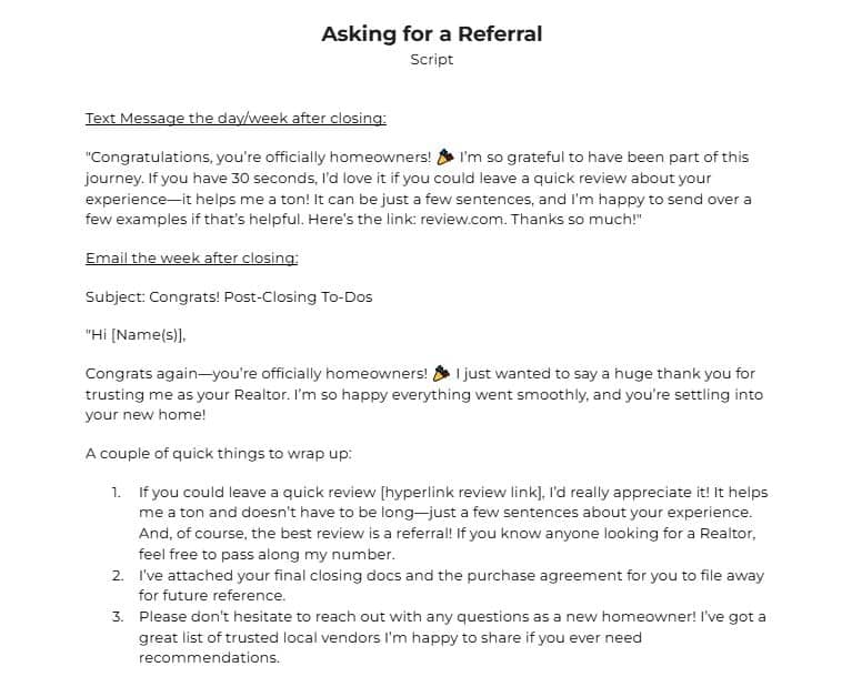 A ready to use script pack for real estate agents to request reviews confidently and on time, so happy clients turn into public proof and referrals.